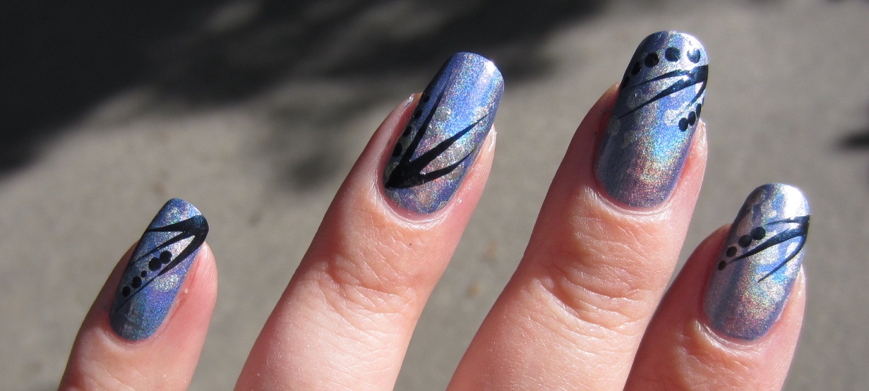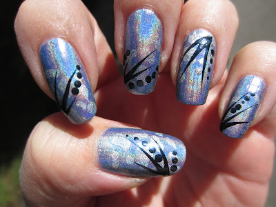 I'm not a big fan of blue so it is hard to be inspired. So I just thought of doing somethiag simple and something that would not cover up the Holo Polish too much.