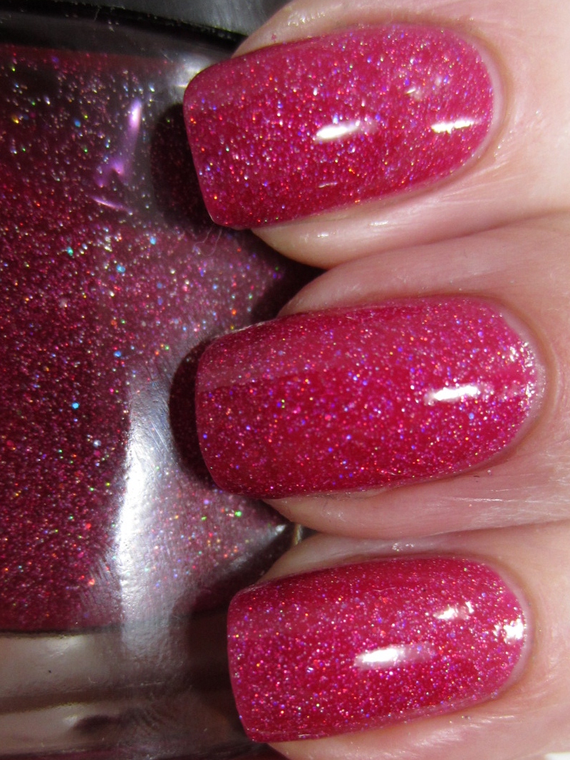 My franken is a bright cherry/berry red polish packed with